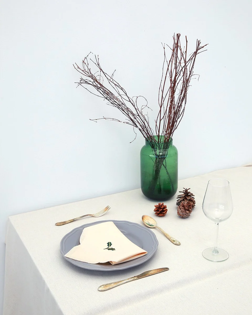 Αφήστε την φαντασία σας ελεύθερη και εντυπωσιάστε τους καλεσμένους σας με ιδιαίτερες πετσέτες φαγητού που θα τοποθετήσετε πάνω σε κάθε σερβίτσιο. Δώστε την τελευταία πινελιά τοποθετώντας μερικά κουκουνάρια ή ρόδια στο κέντρο του τραπεζιού και είστε έτοιμοι. Να θυμάστε πως το βασικό είναι ο χώρος που δημιουργήσατε να προσφέρει ζεστασιά. Καλές γιορτές!