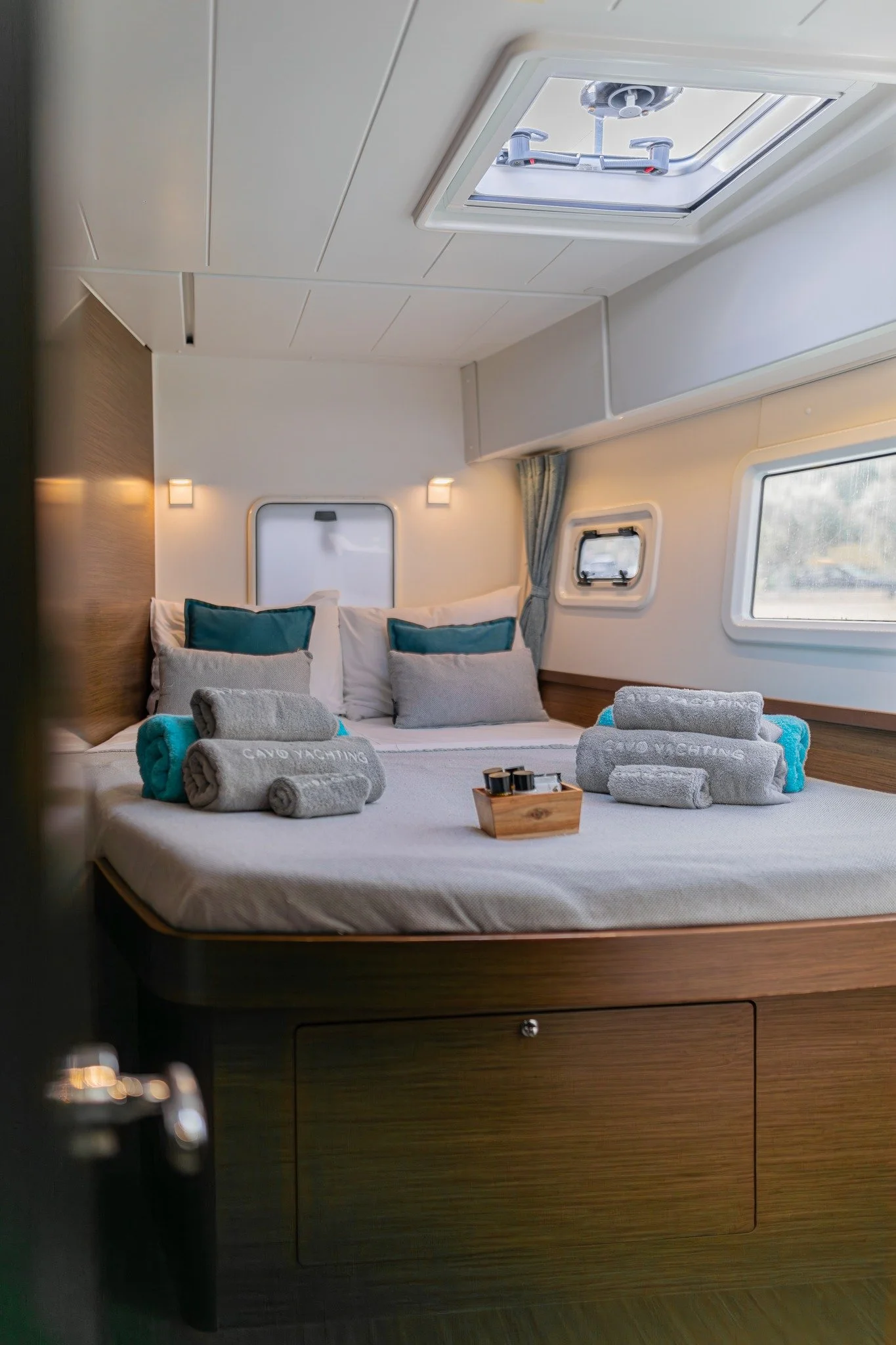 Η Cavo yachting ανανέωσε τον εξοπλισμό της καμπίνας με Pennie κλινοσκεπάσματα , μαξ/κες , όμορφα κουβερλί, υδρόφιλες πετσέτες μπάνιου καθώς και πετσέτες παρεό.